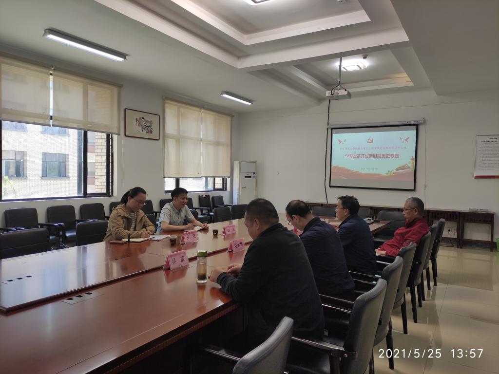 党委书记郑继明领学了《中国共产党简史》中关于改革开放新时期历史的内容,回顾了从1978年党的十一届三中全会到中国共产党第十八次代表大会期间的重大历史事件特别是历次党的代表大会。在以“中国特色社会主义为什么好”为主题进行的交流讨论中,郑继明从对中国特色社会主义的理解、历史维度的科学性、实践维度的合理性三个方面进行了分析,他强调,中国特色社会主义道路是在实践中所展开的理论、制度和文化经过了阶段性的实践检验,我们也有信心在党的坚强领导下,从党史学习教育中汲取智慧和力量,面对今后新的困难和挑战,不断取得新突破。