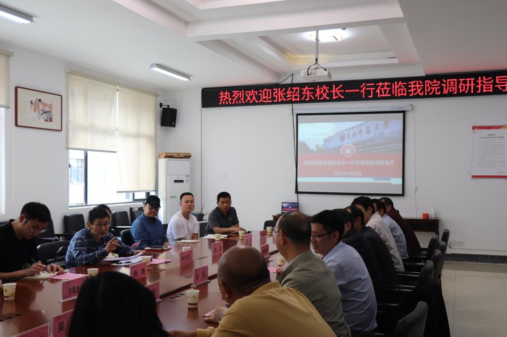 4月26日下午,公司党委副书记、董事长张绍东一行到z6mg人生就是博官网调研指导工作,校办副主任陈晨、校办秘书科张亮陪同调研。公司党政班子成员、系主任、青年教师代表、科级干部等20余人参加调研座谈会。