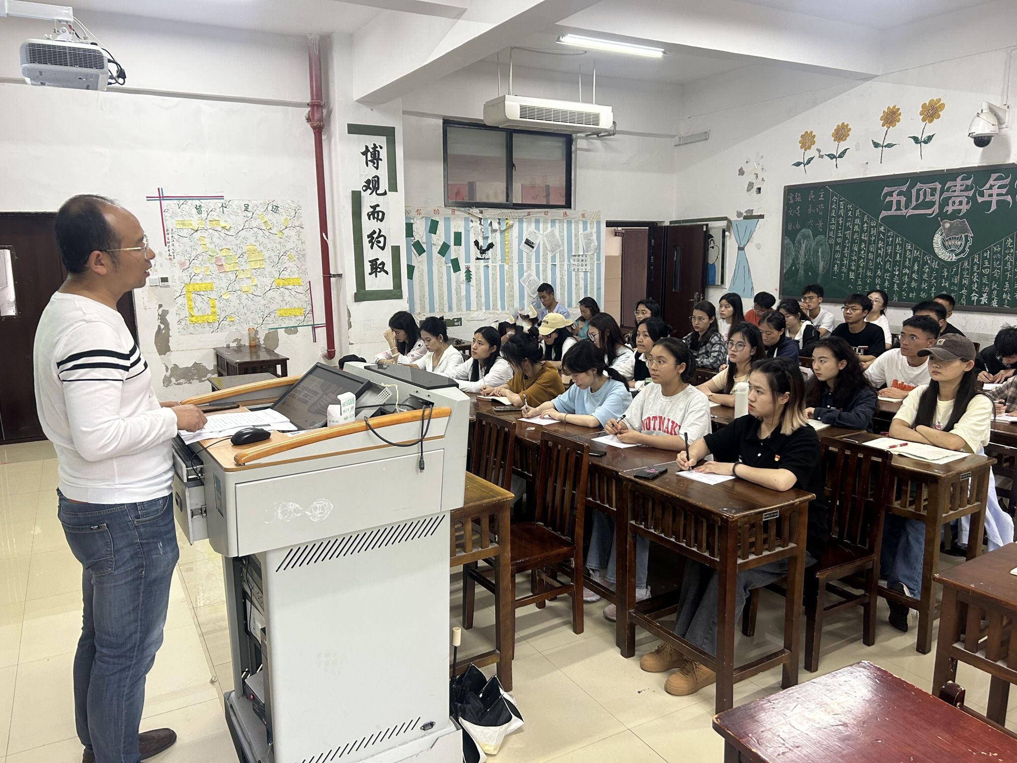 为扎实开展学习贯彻习近平新时代中国特色社会主义思想主题教育,牢牢把握“学思想、强党性、重实践、建新功”的总要求,6月25日,公司党委副书记杨光复以《以习近平总书记关于教育工作的重要论述为指引,推动“三全育人”提质创新》为主题向师生党员上专题党课。全体辅导员老师、本科生第六党支部党员参加。