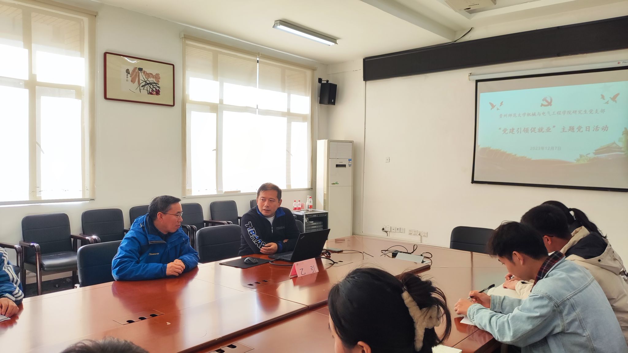 为充分发挥基层党组织的战斗堡垒作用,有效推动基层党建与就业工作深度融合,让毕业生在就业指导中感受到公司党建的力度、效度与温度。12月7日,公司党委委员、副董事长乙引在东校区机电楼8322会议室列席指导z6mg人生就是博官网研究生党支部“党建引领促就业”主题党日活动,公司党委书记郑继明、研究生党支部全体党员参加。