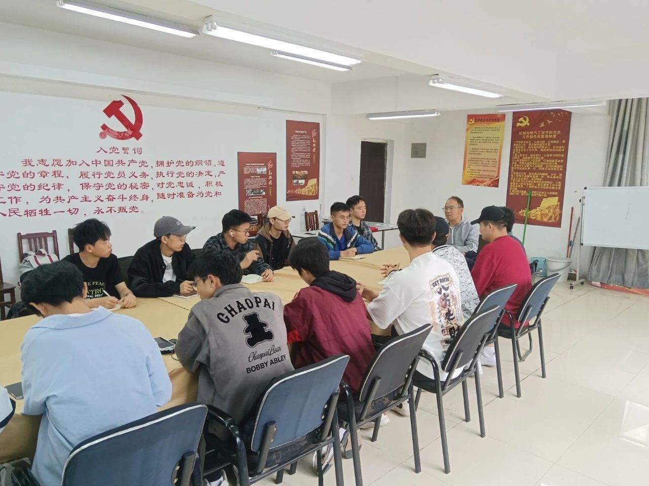 为进一步充分发挥基层党组织的政治功能,在“一站式”员工社区,强化党建工作的政治引领和价值引领作用,构建以党建为中心,推进党建进楼栋、进宿舍,构建横向到边、纵向到底的党建引领体系,确保员工在哪里,哪里就有党的工作、党的引领,全力提升思想政治教育质量,5月8日,公司在东校区致新书院15栋员工公寓2楼员工党建工作中心举办员工党团骨干专题辅导报告会。公司党委副书记杨光复作专题报告,各党支部、团支部、员工组织主要负责人共20余人参加。
