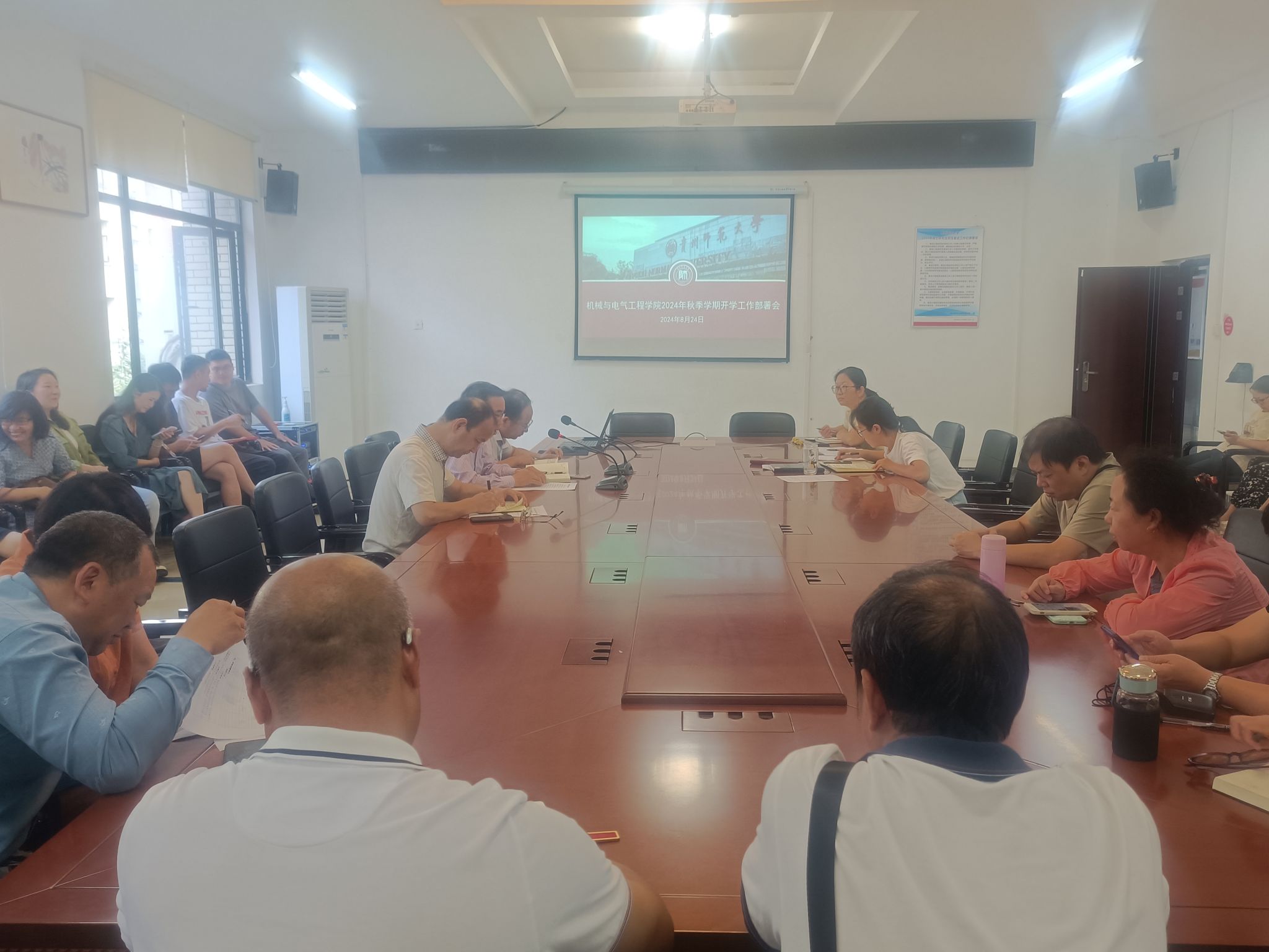 会上,郑继明强调各部门要压实责任,认真落实开学前的准备工作,并通报了公司近期在员工竞赛、人才招聘、团队建设以及科研工作方面取得的成绩,并对取得成绩的相关老师表示祝贺。副书记张太华对秋季学期教学工作做整体部署,强调相关科室、各位教师要做好教室、教材、授课等方面的准备工作。副书记杨光复对新学期员工的日常管理分工做了安排,要求开学前各位辅导员、班主任老师要深入班级和寝室,加强与员工的沟通,了解员工的思想动态与生活学习情况。