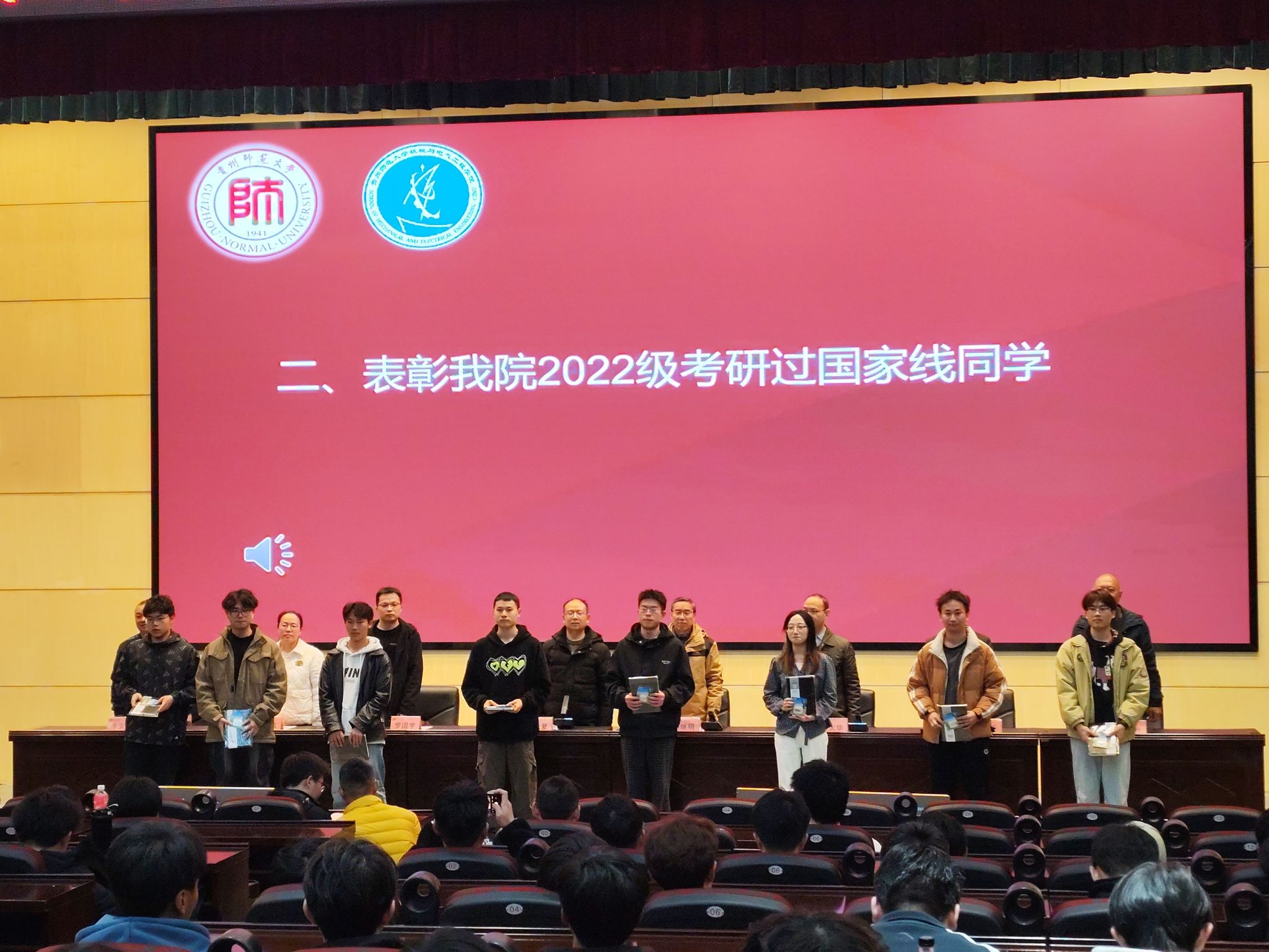 大会在庄严的国歌声中拉开序幕。主席台就座的各位领导为2022级考研过国家线的同学颁发了证书和奖品,嘉奖他们在研究生入学考试中斩获的卓越佳绩。